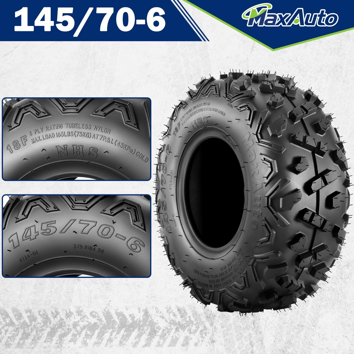 MaxAuto 145/70-6 Mini Bike Tires (2 Pack) - 6-Ply Tubeless ATV Go Kart Tires, 145-70-6 Quad Tires with Reinforced Sidewall for Off-Road & Lawn Use