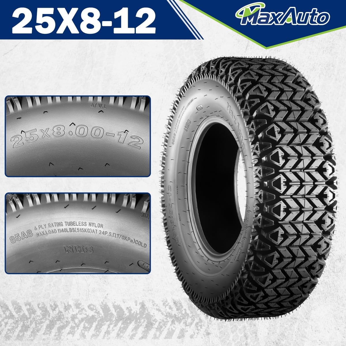 MaxAuto 2pcs 25x8-12 ATV UTV Tires, 25x8x12 All Terrain Side by Side Tires, 25 8 12 Mud Tire, 6Ply Tubelessâ