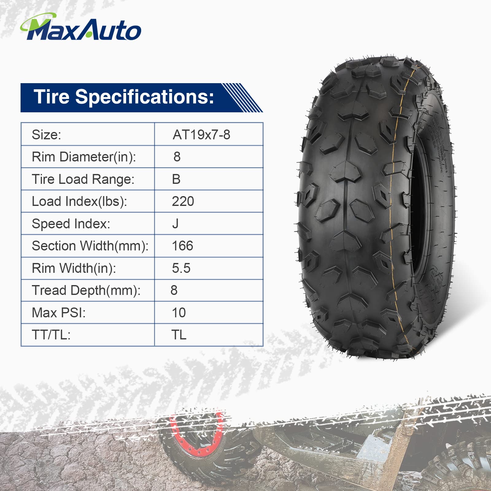 -5%MaxAuto ATV Tires 19x7-8 19x7x8 19x7 8 ATV UTV Off-Road Tire All-Terrain Mini Bike Tire 4PR Tubeless Sport-tire, Set of 2â