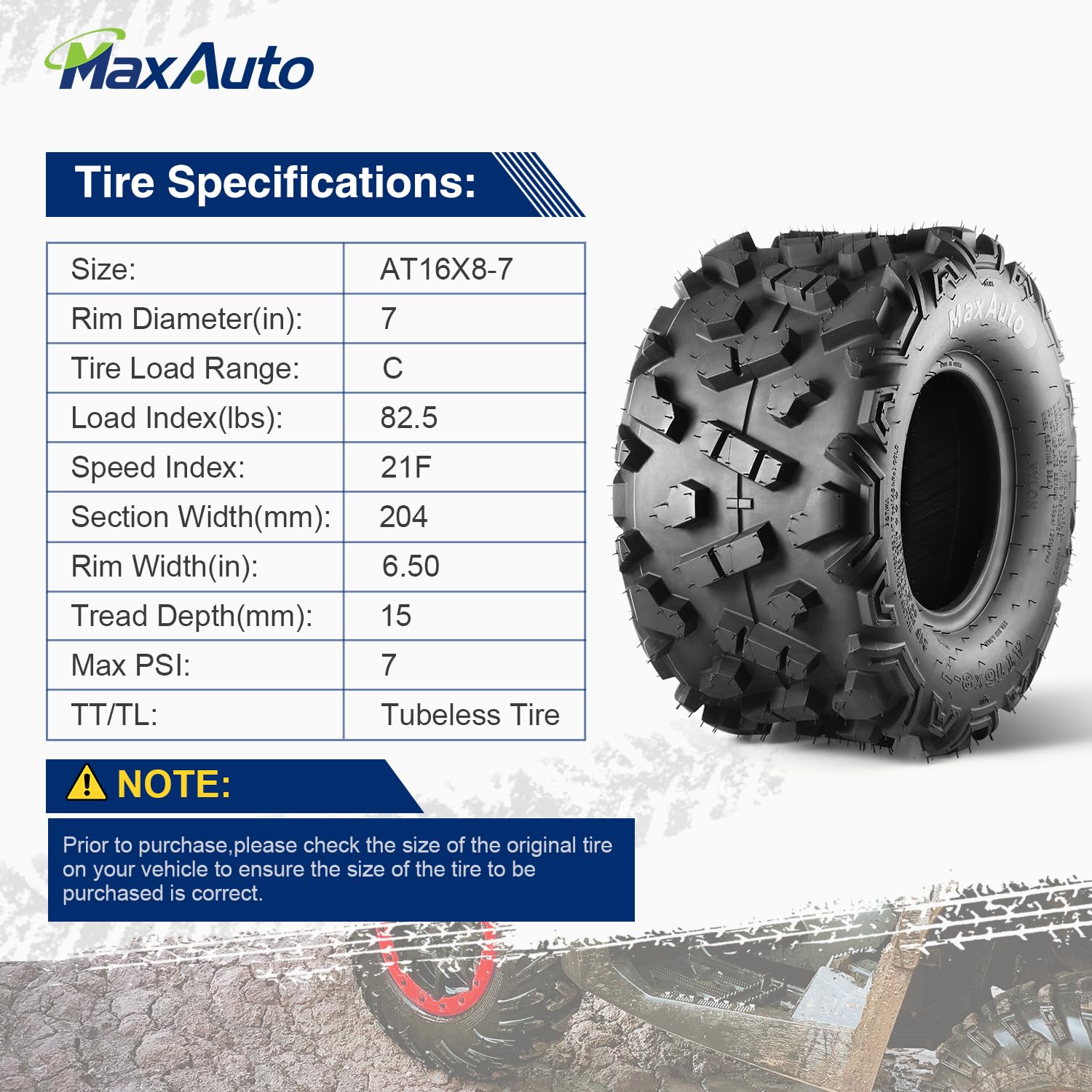 ăPackage IncludeăTotal 2 MaxAuto 16x8-7 Mini Bike Tires,Tubeless Tire. Kindly reminderïŒIn this case, purchasing a quantity of 1 means you will receive a pair of 16x8x7 atv tires