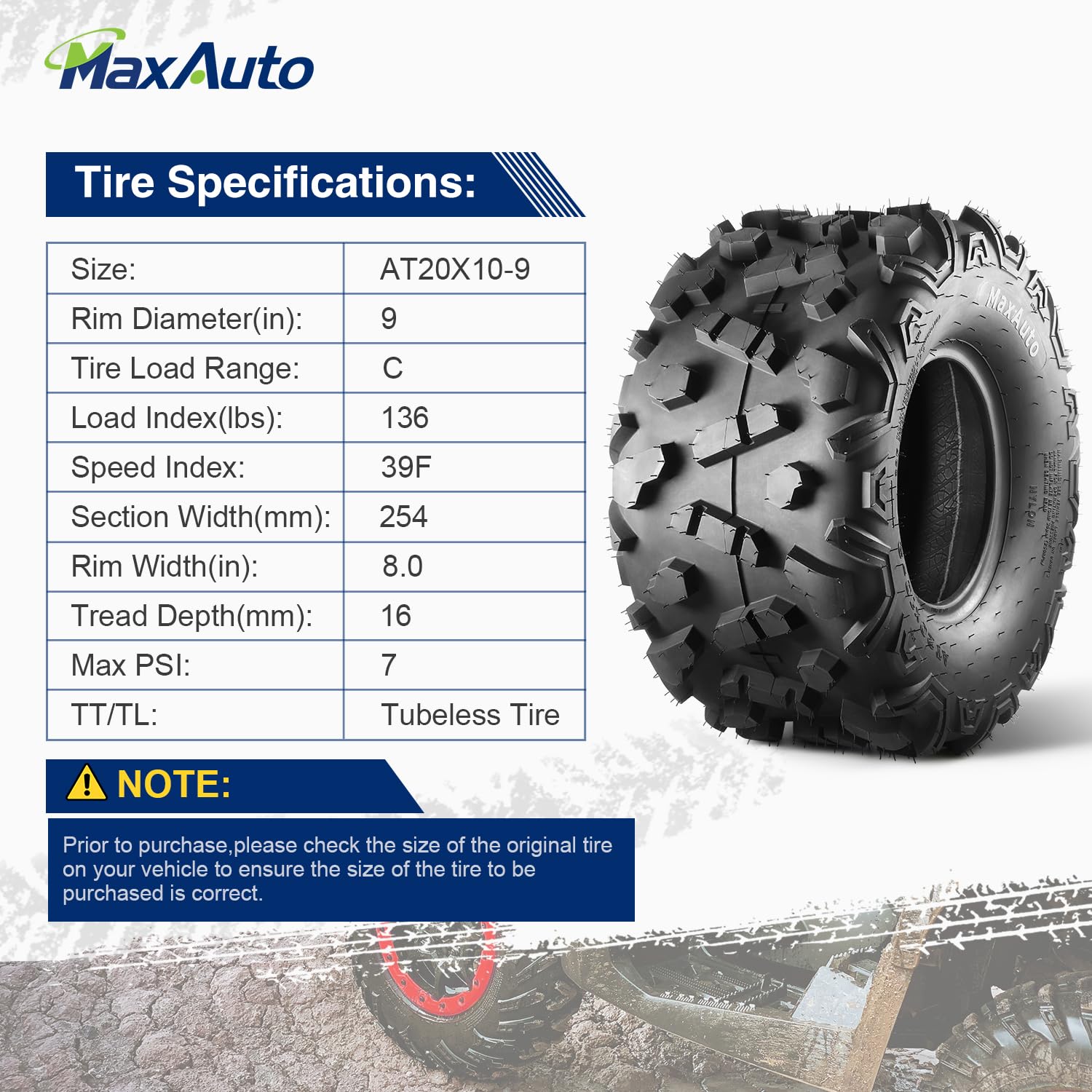 - ăPackage IncludeăTotal 2 MaxAuto 20x10-9 All Terrian Tires,Tubeless Tire. Kindly reminderïŒIn this case, purchasing a quantity of 1 means you will receive a pair of 20x10x9 atv tires